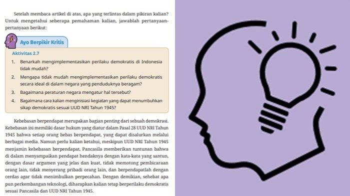 Di buku paket Pendidikan Pancasila kelas 11 SMA halaman 57 Kurikulum Merdeka, siswa diminta untuk mengerjakan tugas Ayo Berpikir Kritis Aktivitas 2.7.