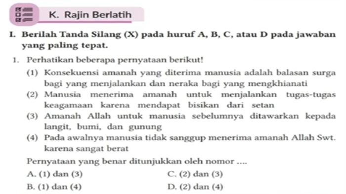 Kunci Jawaban PAI Kelas 8 SMP Halaman 76-77 Kurikulum Merdeka, Soal Pilihan Ganda Rajin Berlatih