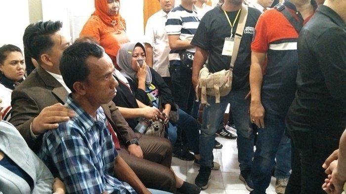 Safarudin ayah korban menahan amarahnya diterangkan oleh tim kuasa hukumnya sementara Marlina bibi korban menangis.