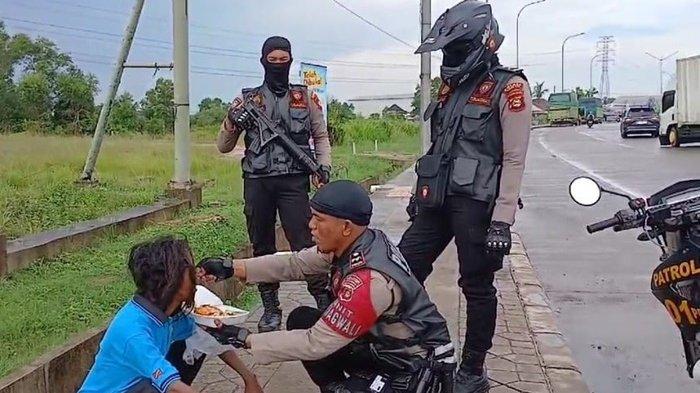 Patroli Polisi Polres Ogan Ilir Beri Makan dan Pakaian kepada ODGJ, Tergeletak Lemas di Trotoar