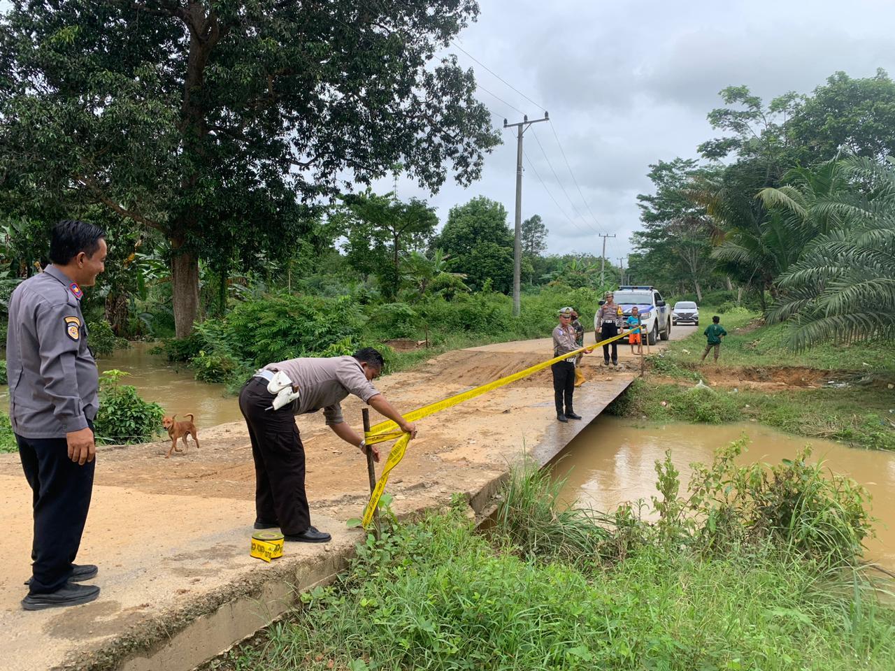 Kondisi Jembatan di Jalur Alternatif PALI-Musi Rawas Rawan Banjir, Polantas Pasang Police Line