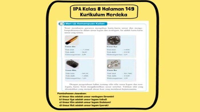 Kunci Jawaban IPA Kelas 8 Halaman 149 Kurikulum Merdeka, Mari Uji Kemampuan Sifat Logam dan Nonlogam