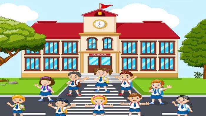 2) Berapa meter perkiraan tinggi gedung sekolah?
