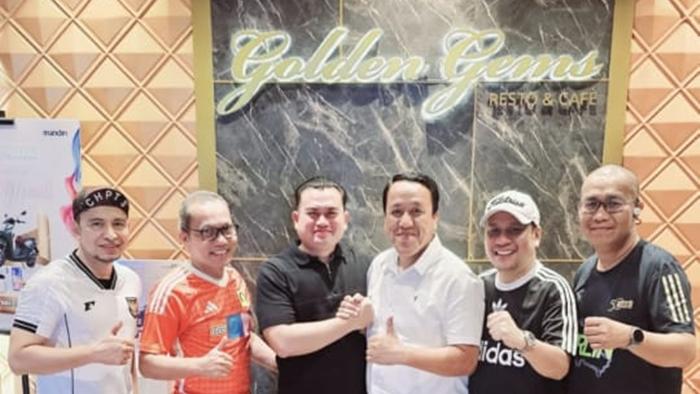 Dalam foto Kepala Pembina EPA Sriwijaya FC U20 Mohammad David ini terlihat berada di Golden Gems Resto & Cafe Komplek Ruko Rajawali Palembang, Senin (28/7/2025), juga bersama jajaran manajemen dan pengurus Sumsel United FC.