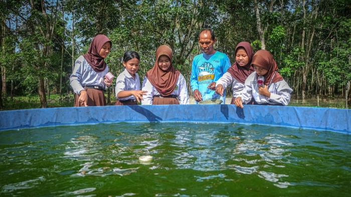 Mereka juga belajar mengenal tahapan budidaya ikan, mulai dari penebaran benih, pemberian pakan, hingga pengelolaan kualitas air.