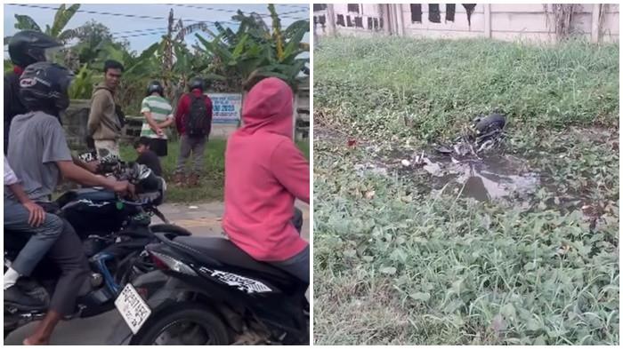 Saat ditemukan kondisi motor korban hancur, tubuh korban terpental jauh dari kendaraannya sampai masuk ke area rawa-rawa pinggir jalan.
