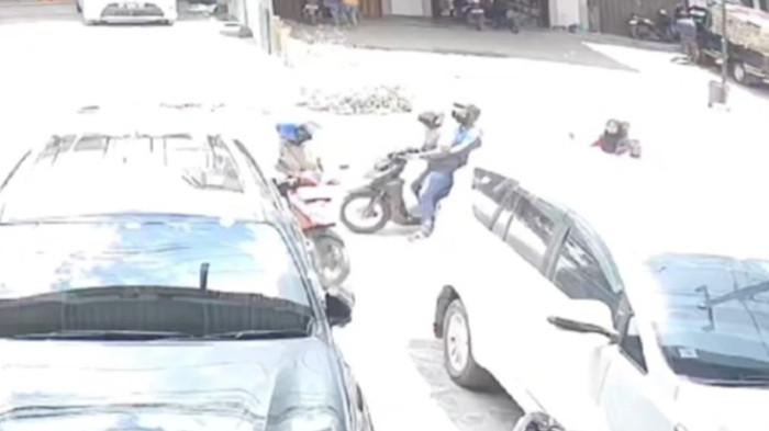 Jika dilihat dari rekaman CCTV, pelaku datang berboncengan sepeda motor matic terlihat setop di pinggir jalan.