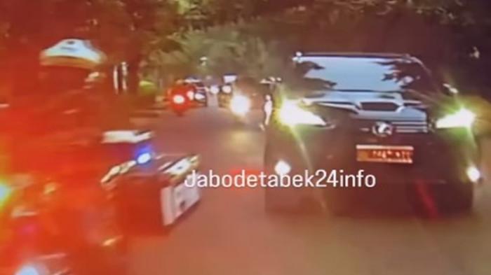 Sebab itu, sopir mobil sang perekam tiba-tiba kaget ketika motor pengawalan bertuliskan PM mendadak belok saat tiba di pertigaan jalan.