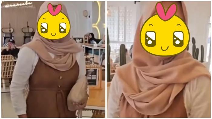Dalam video berdurasi sekitar satu menit itu, tampak seorang wanita berhijab coklat dan mengenakan longdress warna senada sedang duduk bersama seorang pria di sebuah kafe.