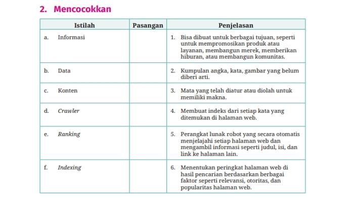 Kunci Jawaban Informatika Kelas 7 SMP Halaman 134 Kurikulum Merdeka, Uji Kompetensi Mencocokkan