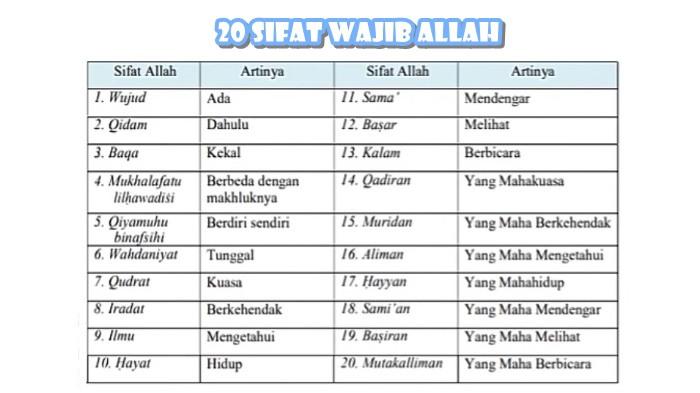 Allah Swt. memiliki sifat wajib yang berjumlah 20. Sifat wajib itu adalah sebagai berikut: