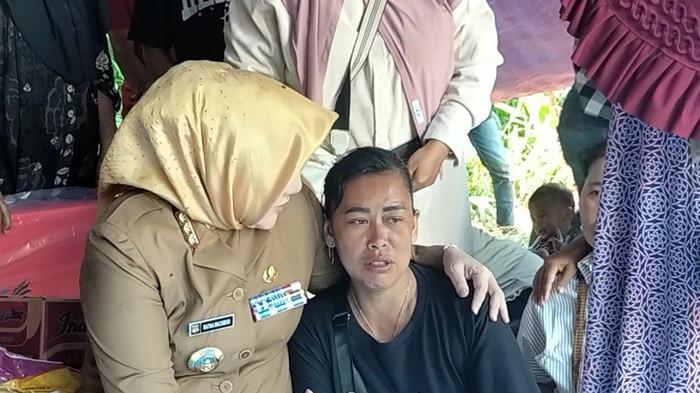 Mus, ibu korban Kelvin Febriansyah (14) yang jatuh ke sungai Air Beliti Musi Rawas disambangi Bupati Musi Rawas. Hj Ratna Machmud.