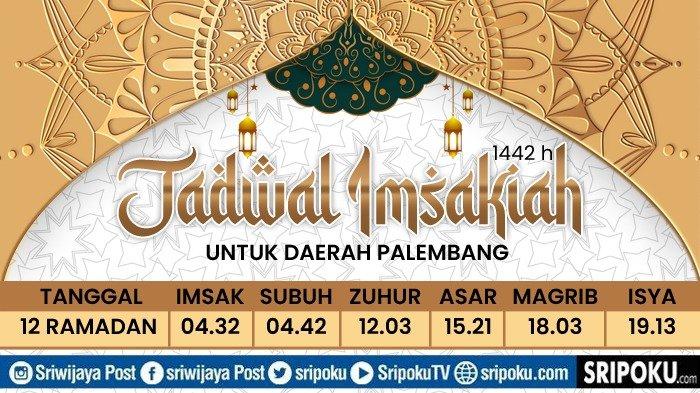 Jadwal berbuka puasa dan jadwal salat wilayah Kota Palembang dan sekitarnya, Sabtu (24/04/2021) atau 12 Ramadan 1442 H.