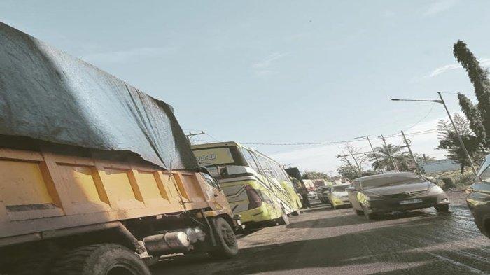 Jalan Lintas Sumatera (Jalinsum) di Desa Merapi Area, Kabupaten Lahat, Sumatera Selatan (Sumsel), kembali mengalami kemacetan.