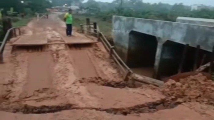 Jembatan yang menghubungkan beberapa desa di Kecamatan Mesuji, OKI, itu amblas dan nyaris putus akibat diterjang banjir.