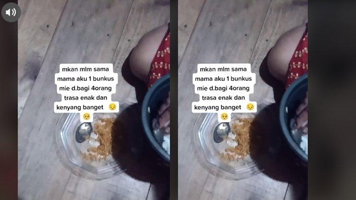 Kisahnya viral di media sosial, satu keluarga makan dengan lauk satu bungkus mie yang dibagi menjadi lima orang.