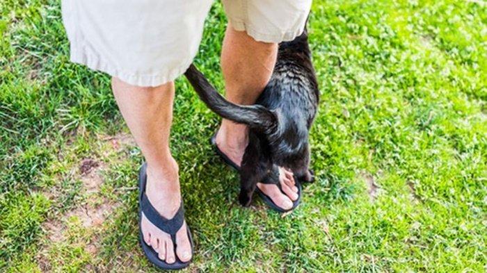 Salah satu perilaku unik seekor kucing ialah menggosokkan tubuhnya ke kaki seseorang atau pemiliknya.