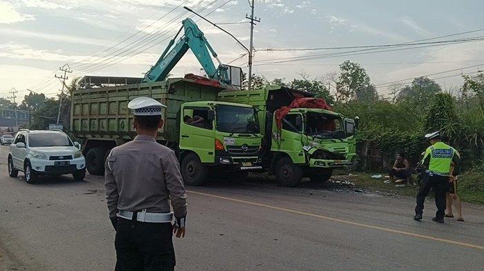 Kendaraan dump tronton angkutan batubara BG 8913 XE milik transportir ALL dikemudikan Agung Prayogo (30) warga Pandeglang Banten