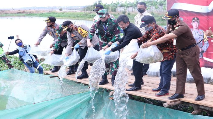 Kapolda Sumsel Irjen Pol. Prof. Dr. Eko Indra Heri S. MM bersama Pangdam II Sriwijaya Mayjen TNI Irwan, SIP, M.Hum mengikuti kegiatan Vicon Launching