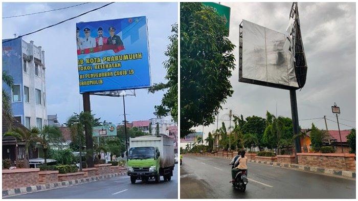 REKLAME Ukuran Besar di Prabumulih Patah Terlipat Ditiup Angin, Nyaris Jatuh dan Menimpa Warga