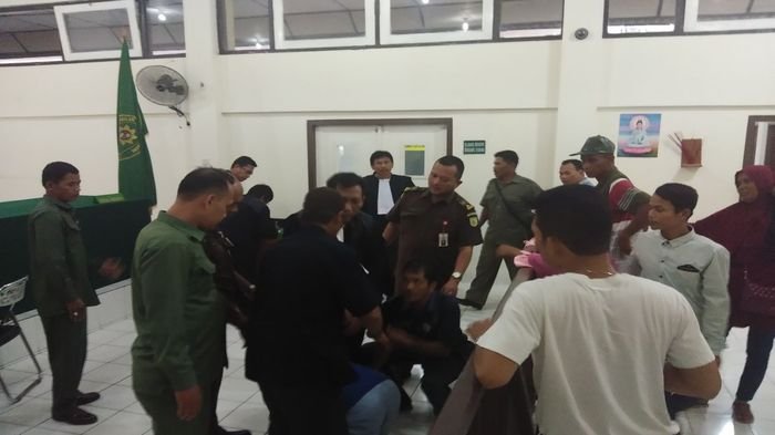 Mendengarkan putusan majelis hakim yang dianggap tak adil, keluarga terdakwa Hardian, berteriak histeris di ruang sidang.